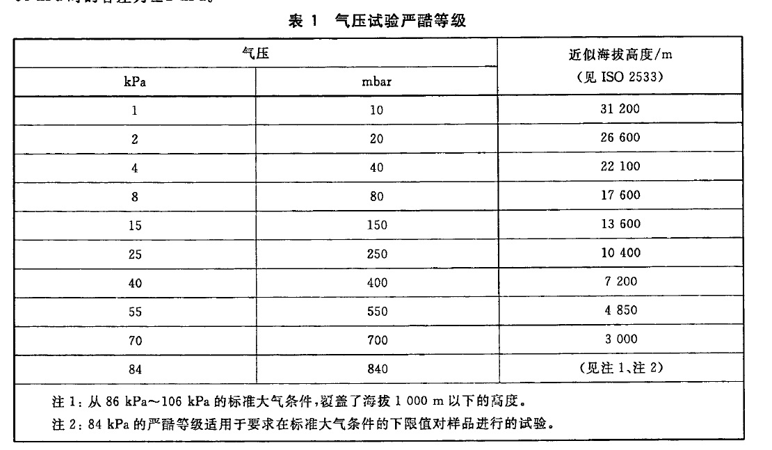 高低溫低氣壓試驗箱海拔和壓力對照表?