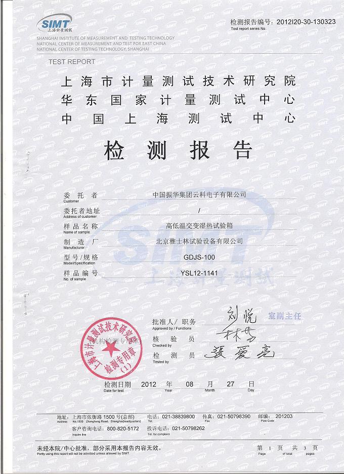 >>高低溫交變濕熱試驗(yàn)箱檢測(cè)報(bào)告-上海計(jì)量院-振華集團(tuán)