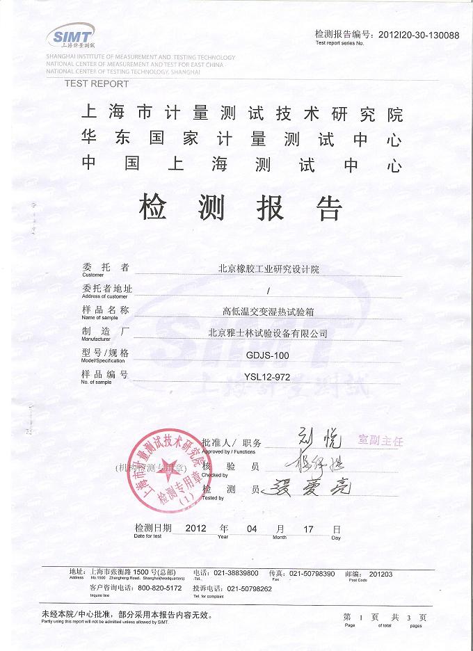 ·高低溫交變濕熱試驗(yàn)箱檢測(cè)報(bào)告-上海計(jì)量院-北京橡膠院
