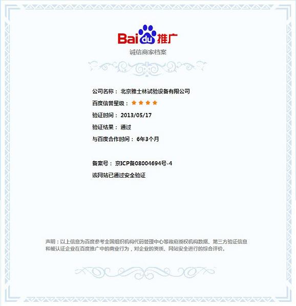 >>雅士林儀器榮膺百度誠信商家認(rèn)證