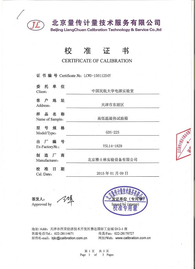 >>高低溫箱鹽霧箱雙雙通過第三方計量 雅士林儀器質量有保證