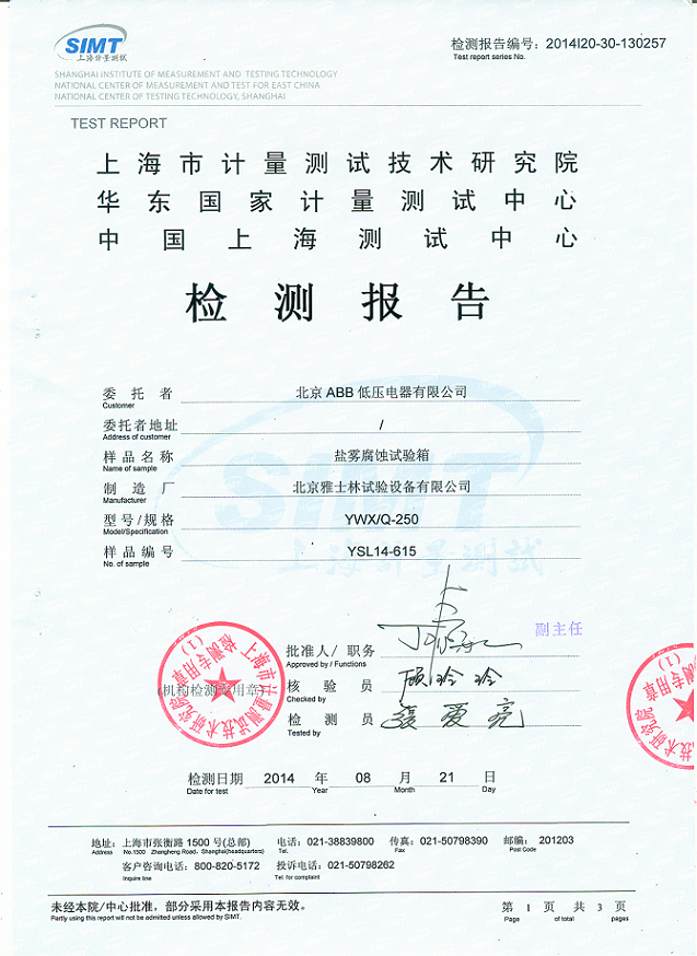 環(huán)境試驗設備行業(yè)判斷產品質量是否合格,通常由國家第三方權威檢測機構出具相關檢測報告,雅士林儀器標準化圖紙接線、焊接、三十五項嚴格檢驗流程,所選配件均為世界知名品牌,正品行貨,一萬兩千多家行業(yè)用戶共同見證,質量有保證。公司所出品的環(huán)境試驗設備均能滿足國標、軍標、國際標準等多項檢測標準,中國計量院、北京計量院、上海計量院等多家第三方權威檢測機構榮譽認證。