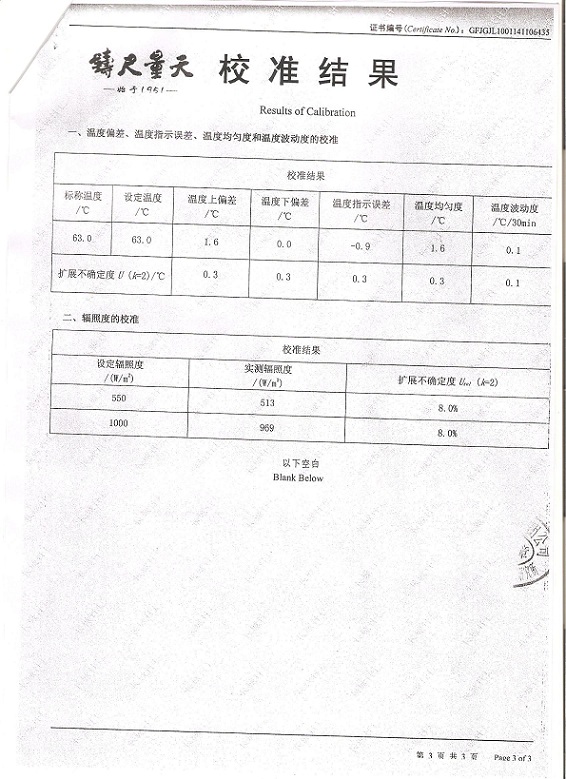 氙燈老化試驗(yàn)箱校準(zhǔn)證書模板下載