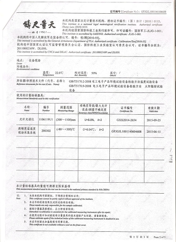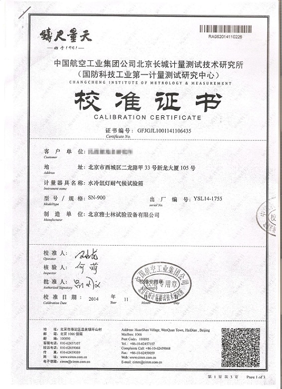 氙燈老化試驗(yàn)箱校準(zhǔn)證書模板下載—北京長城計(jì)量所